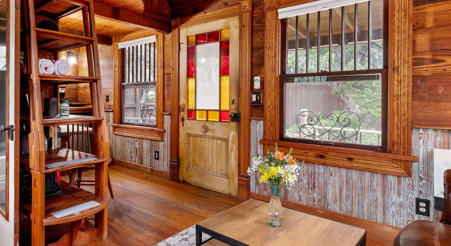 Homestead Cottages’ Tiny Texas House is a beautiful Victorian house, custom made from period-reclaimed materials. Enjoy a relaxing soak in the private hot tub, then climb the ship’s ladder to the sleeping loft and sleep peacefully in the plush king-size bed. We know you will find this Texas Hill Country vacation rental to be cozy and comfortable.